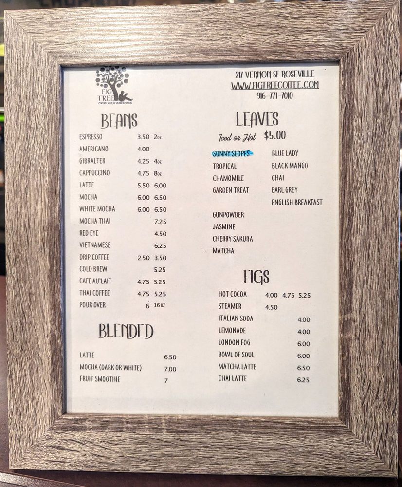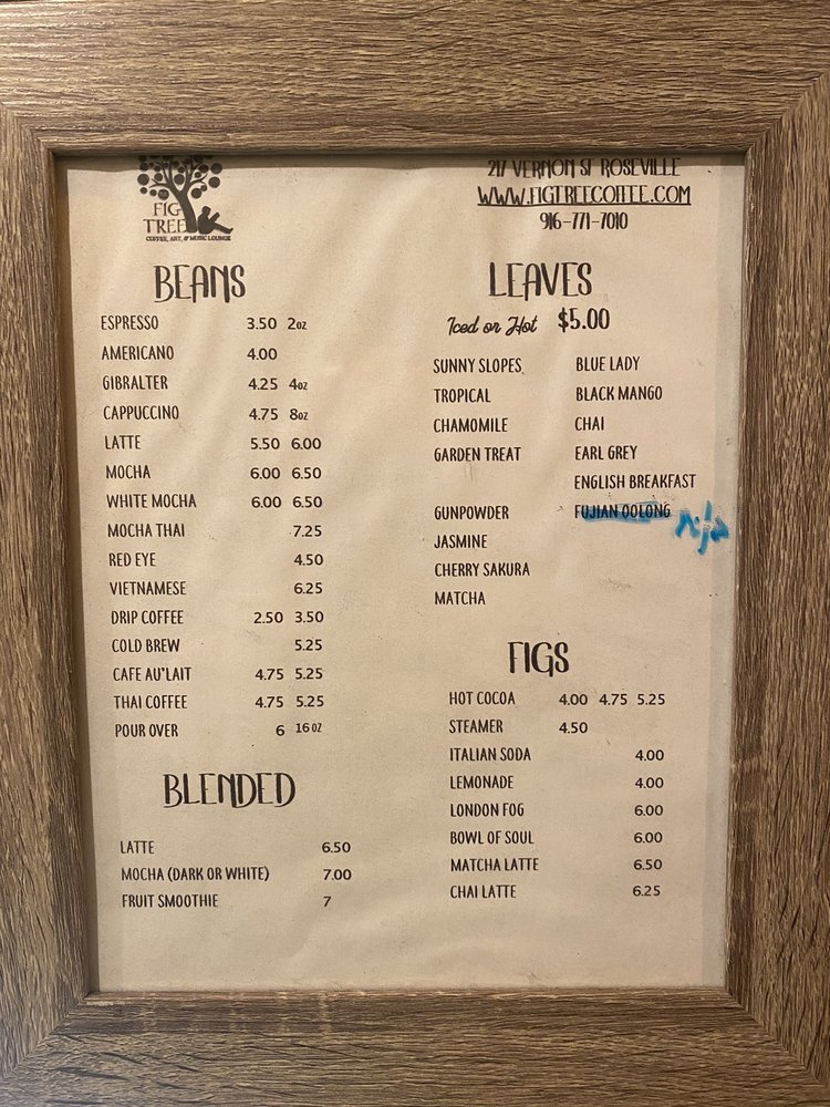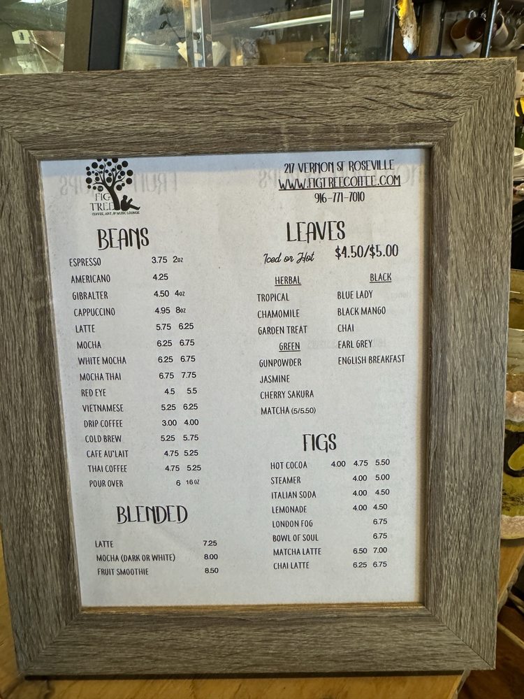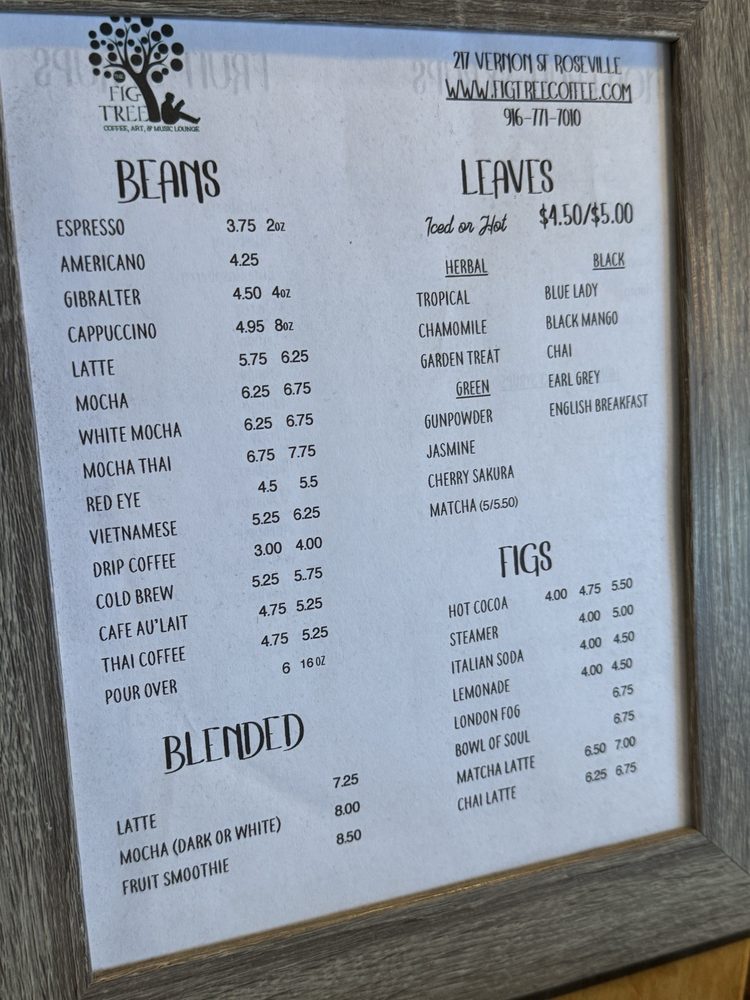 The Fig Tree Coffee, Art, & Music Lounge Menu (Update 2025)